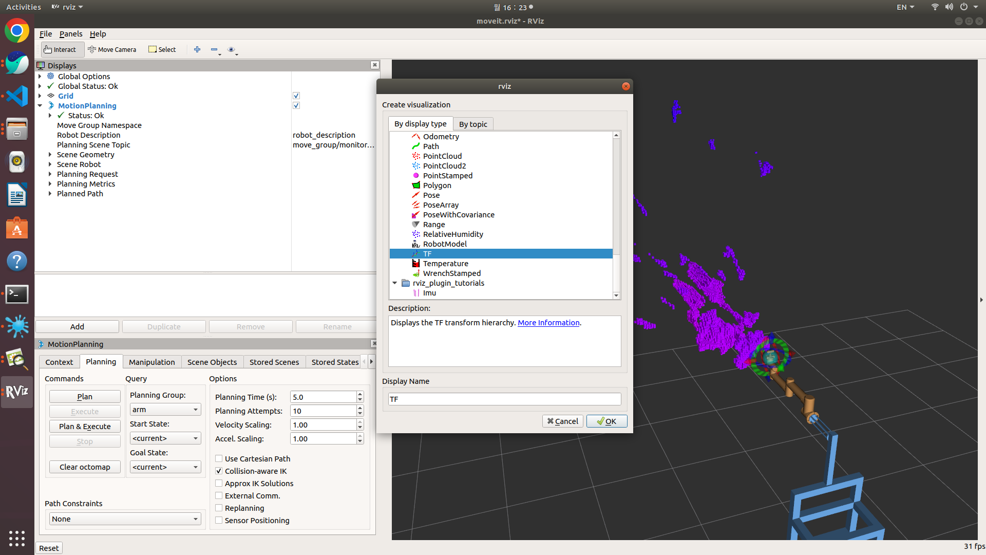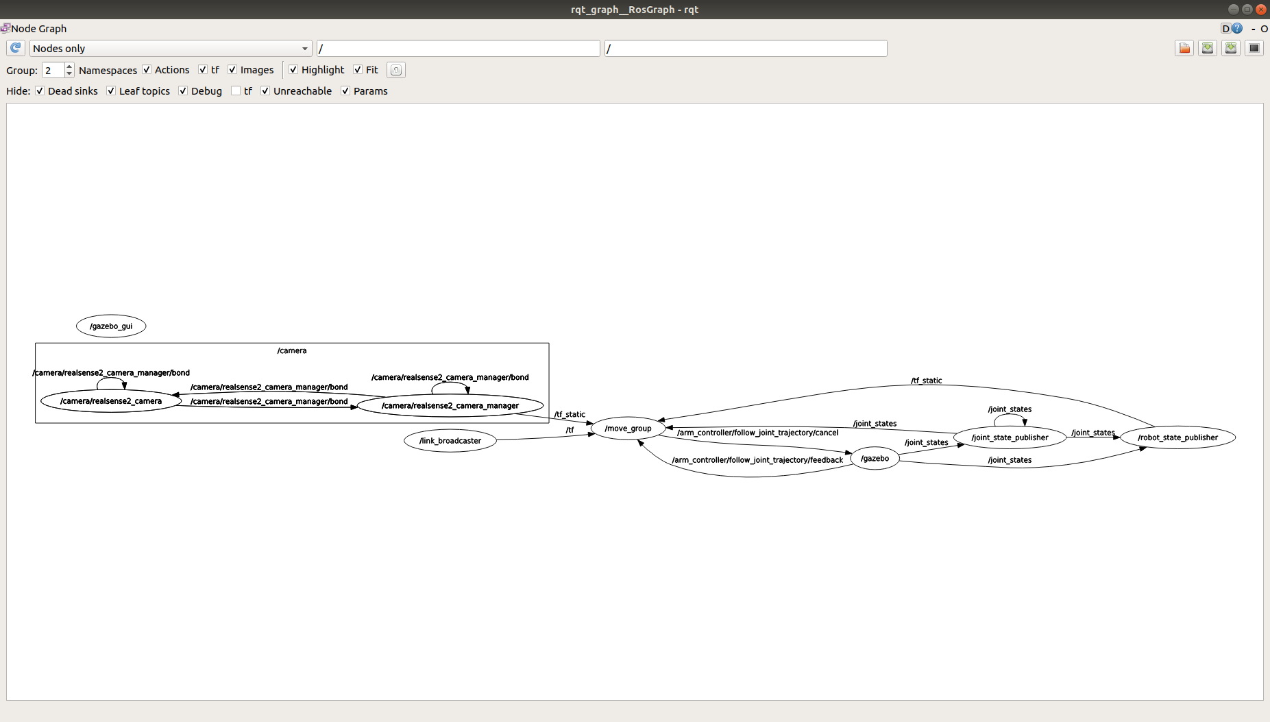 Moveit!과 카메라를 따로 실행시켜서 TF tree를 확인해보면